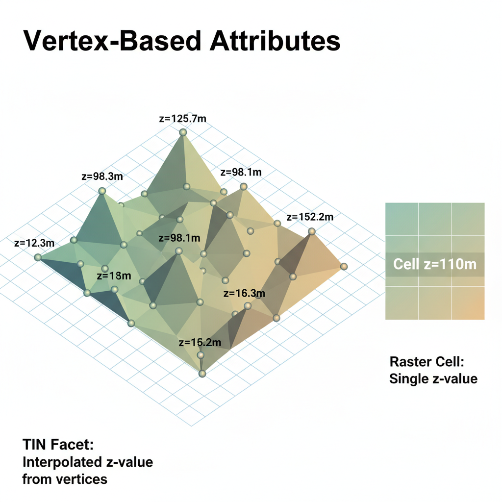 Vertex-Based Attributes: In a TIN, the primary attribute (